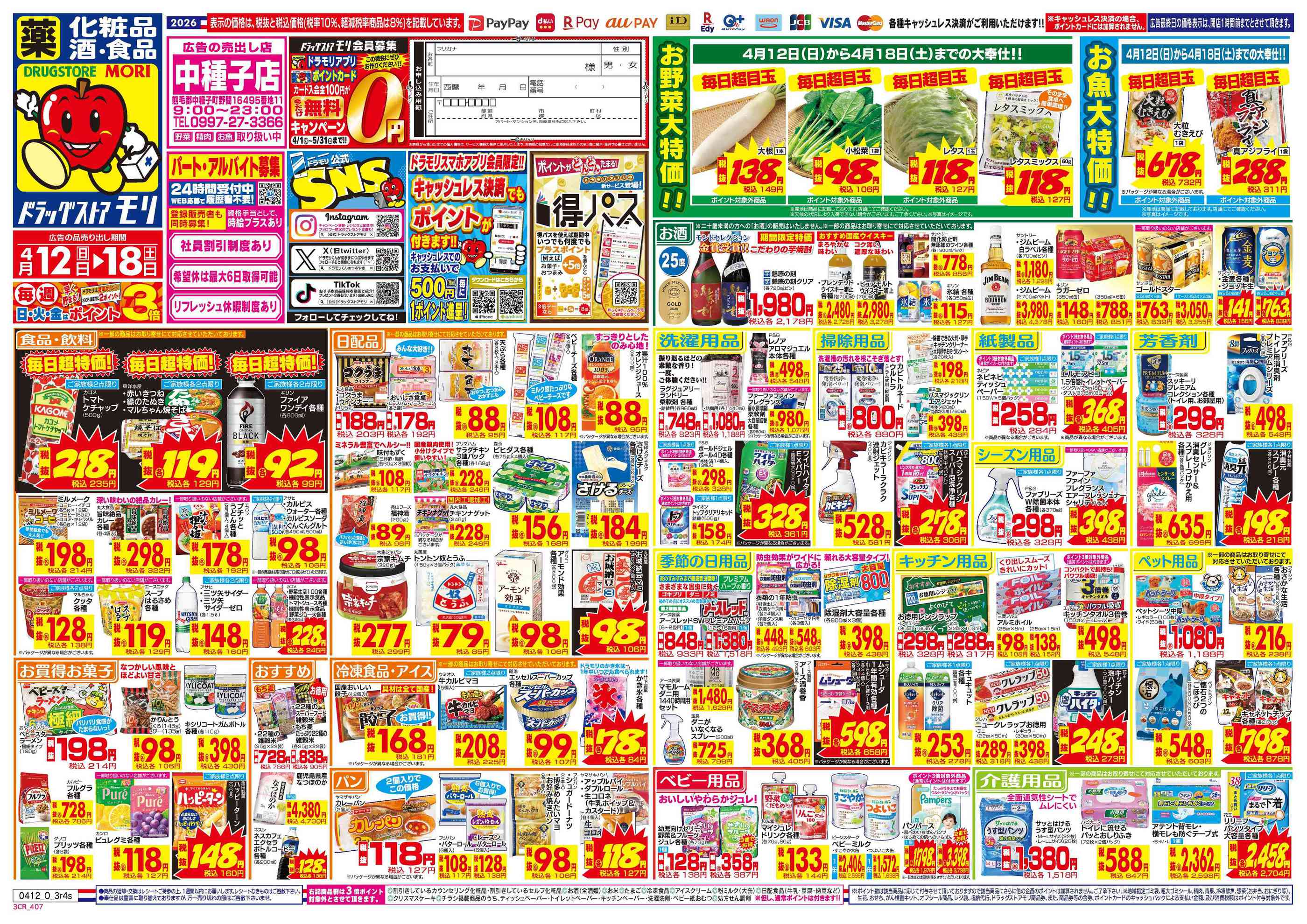 ドラッグストアモリ中種子店今週のチラシ(2026年4月20日〜4月26日)