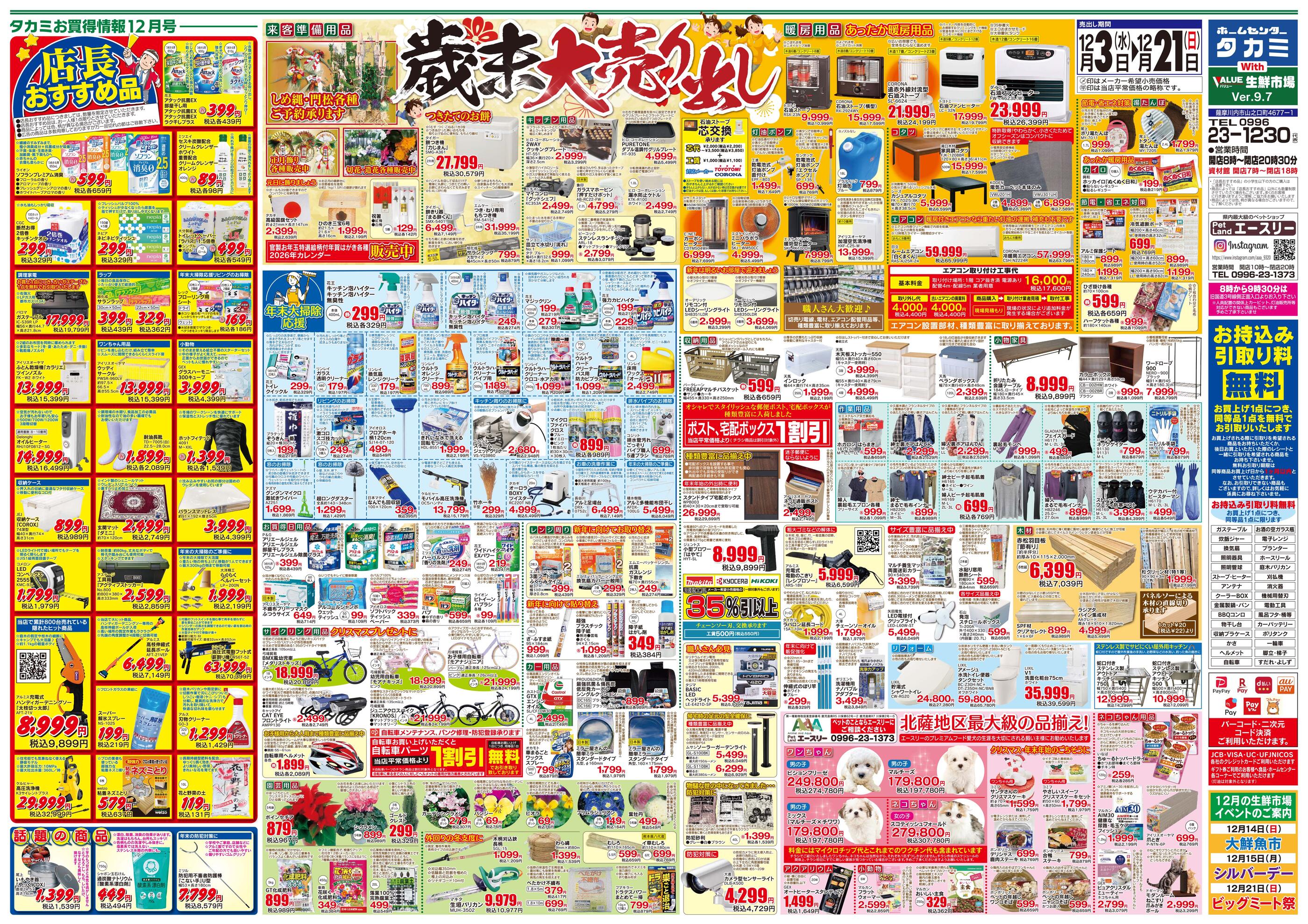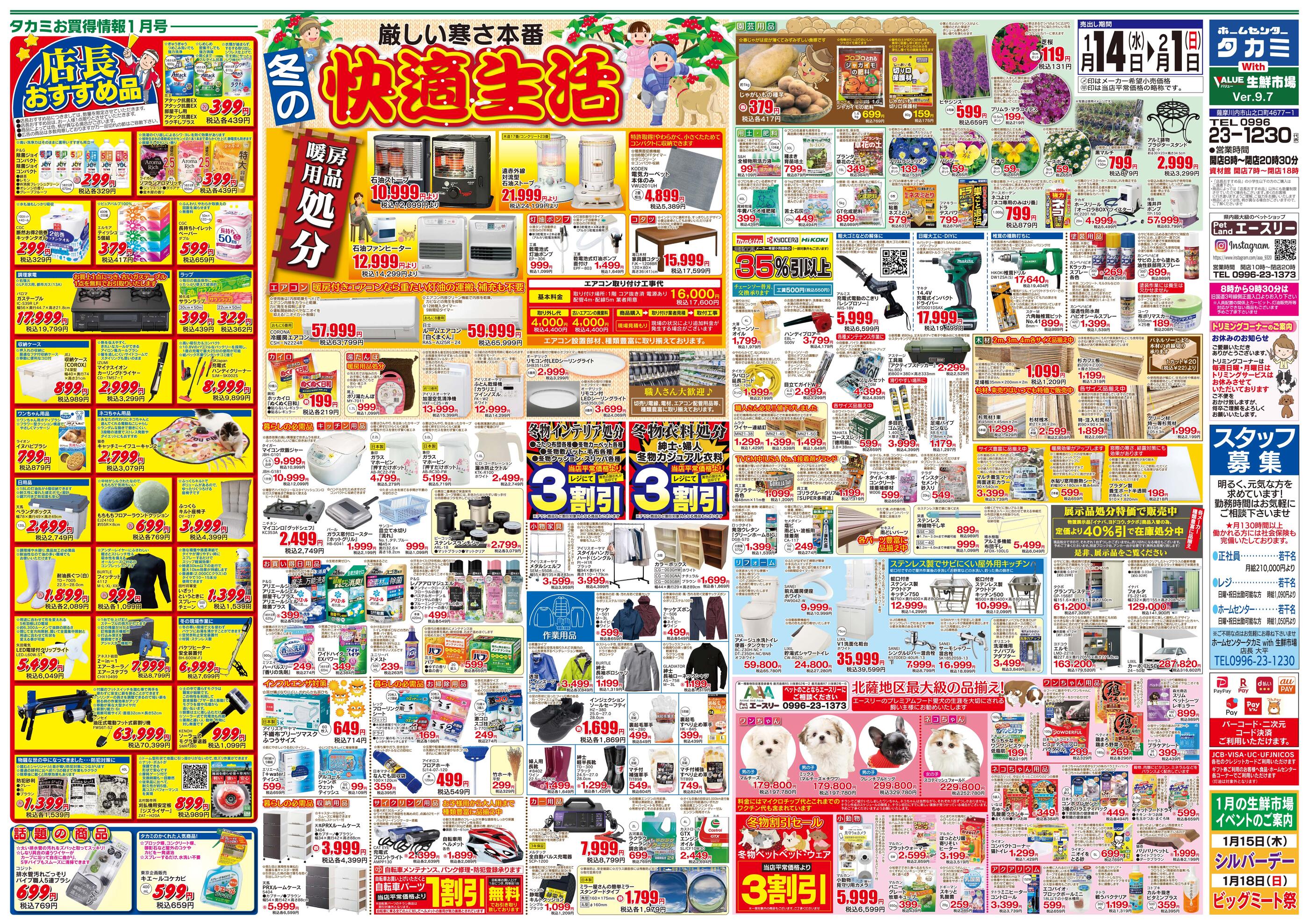 ホームセンタータカミ with バリュー生鮮市場今週のチラシ(2026年1月12日〜1月18日)