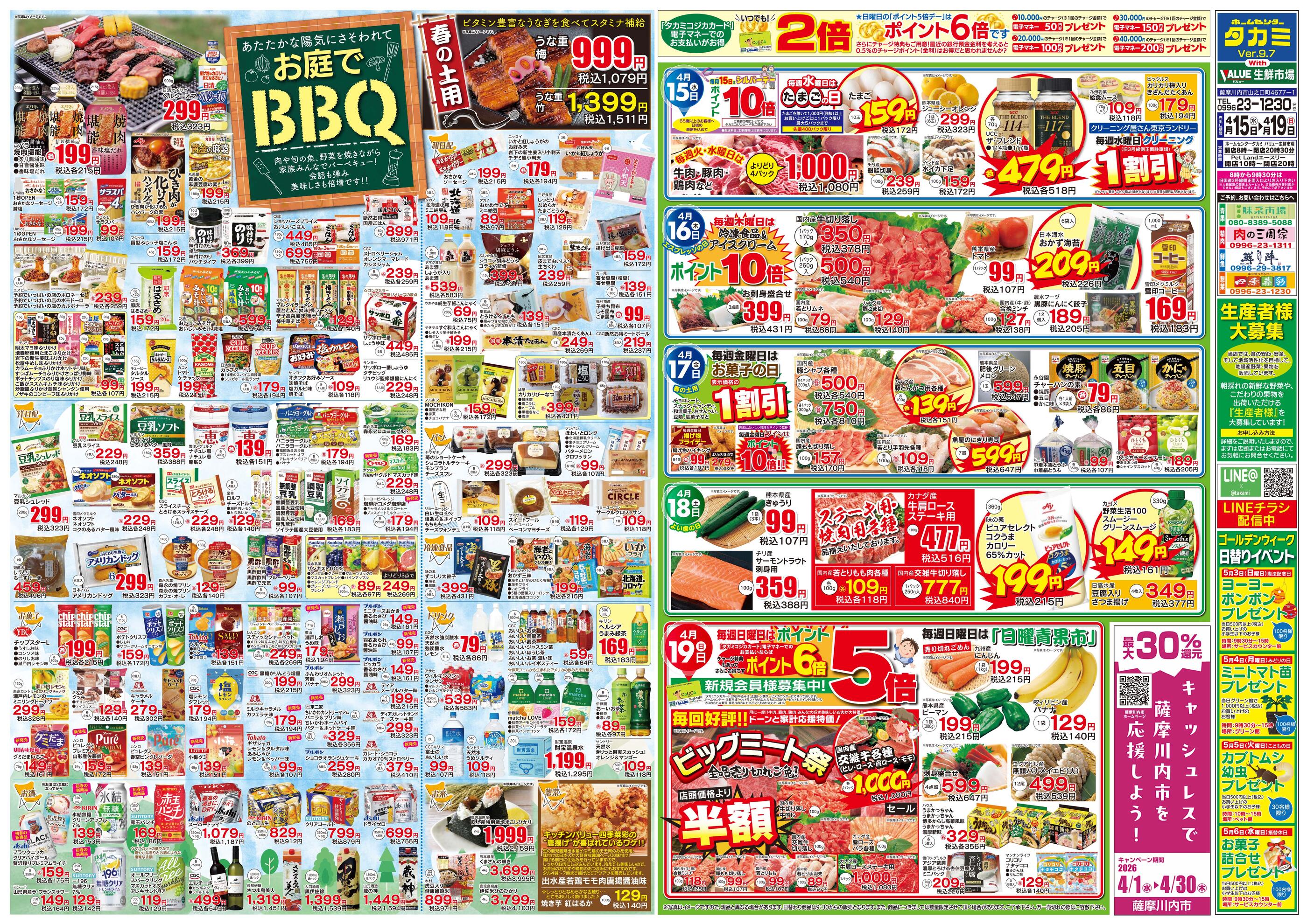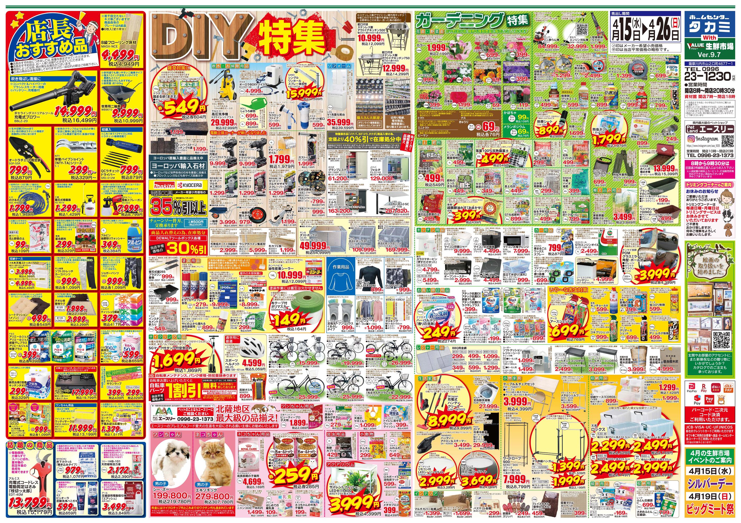 ホームセンタータカミ with バリュー生鮮市場今週のチラシ(2026年4月13日〜4月19日)
