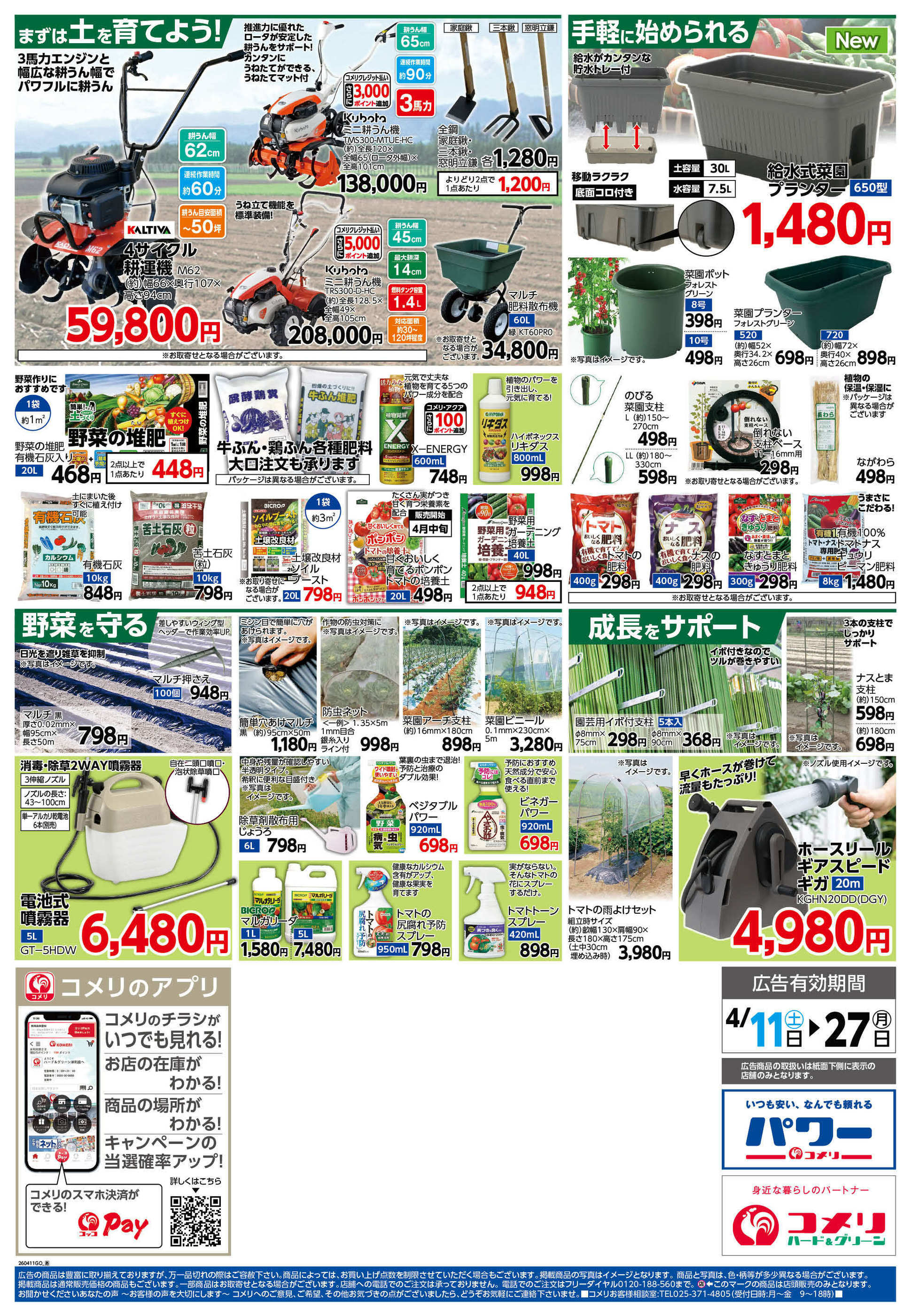 - 2026年4月4〜30日までコメリ 園芸機器特集 (1枚)