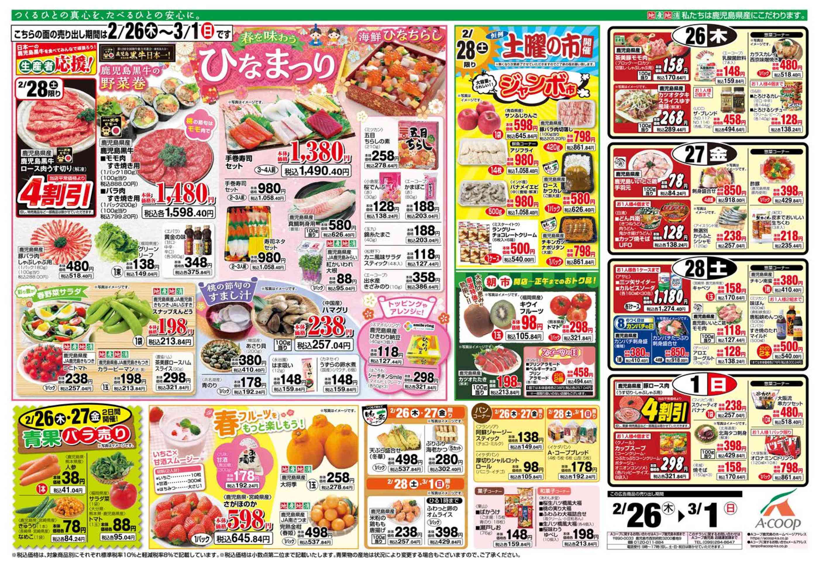 Aコープさつま店今週のチラシ(2026年2月23日〜3月1日)