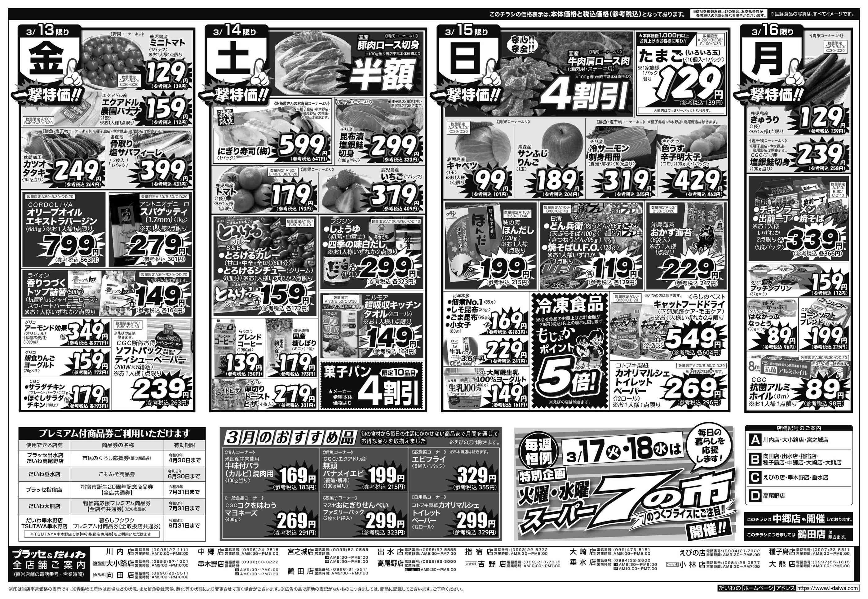 プラッセだいわ種子島店今週のチラシ(2026年3月30日〜4月5日)