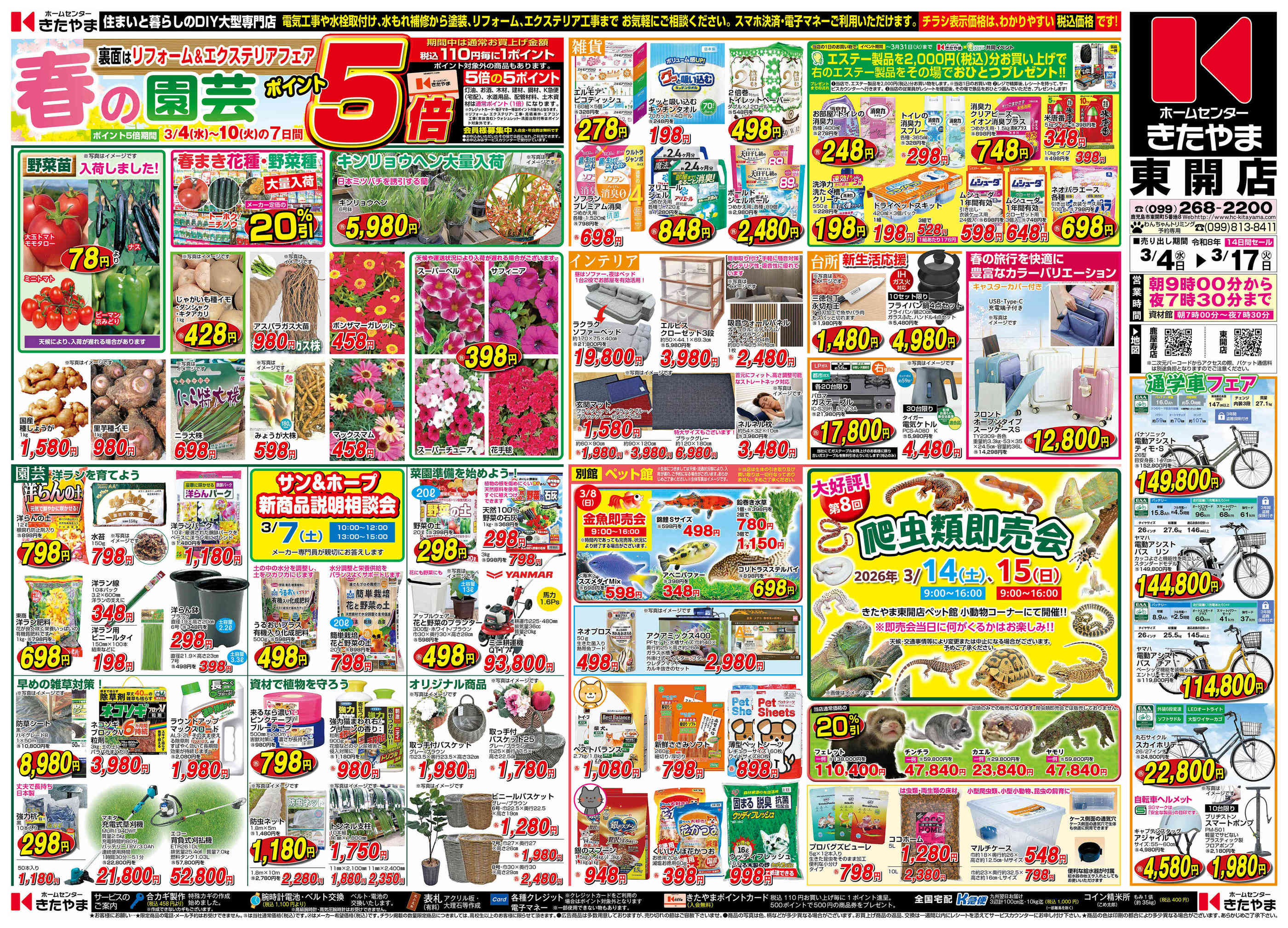 ホームセンターきたやま東開店今週のチラシ(2026年3月2日〜3月8日)