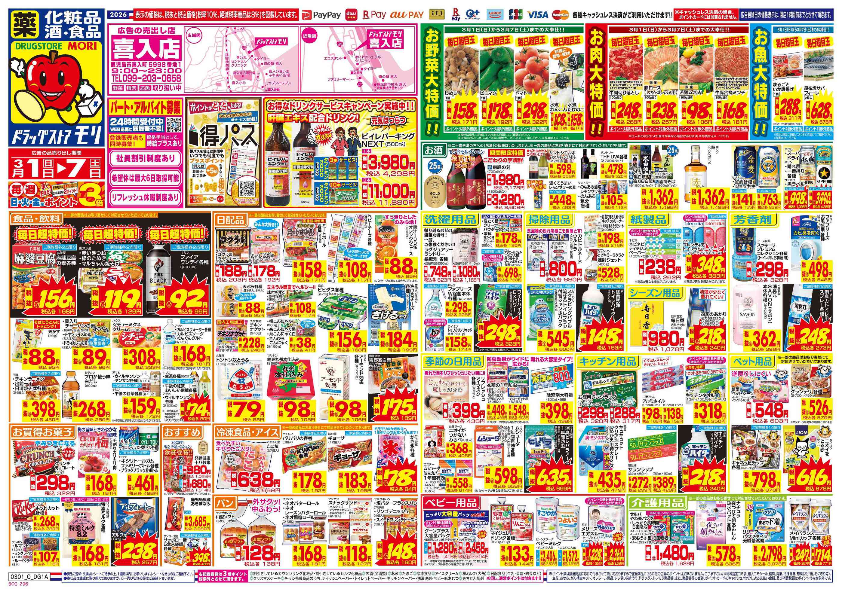 ドラッグストアモリ喜入店今週のチラシ(2026年3月2日〜3月8日)