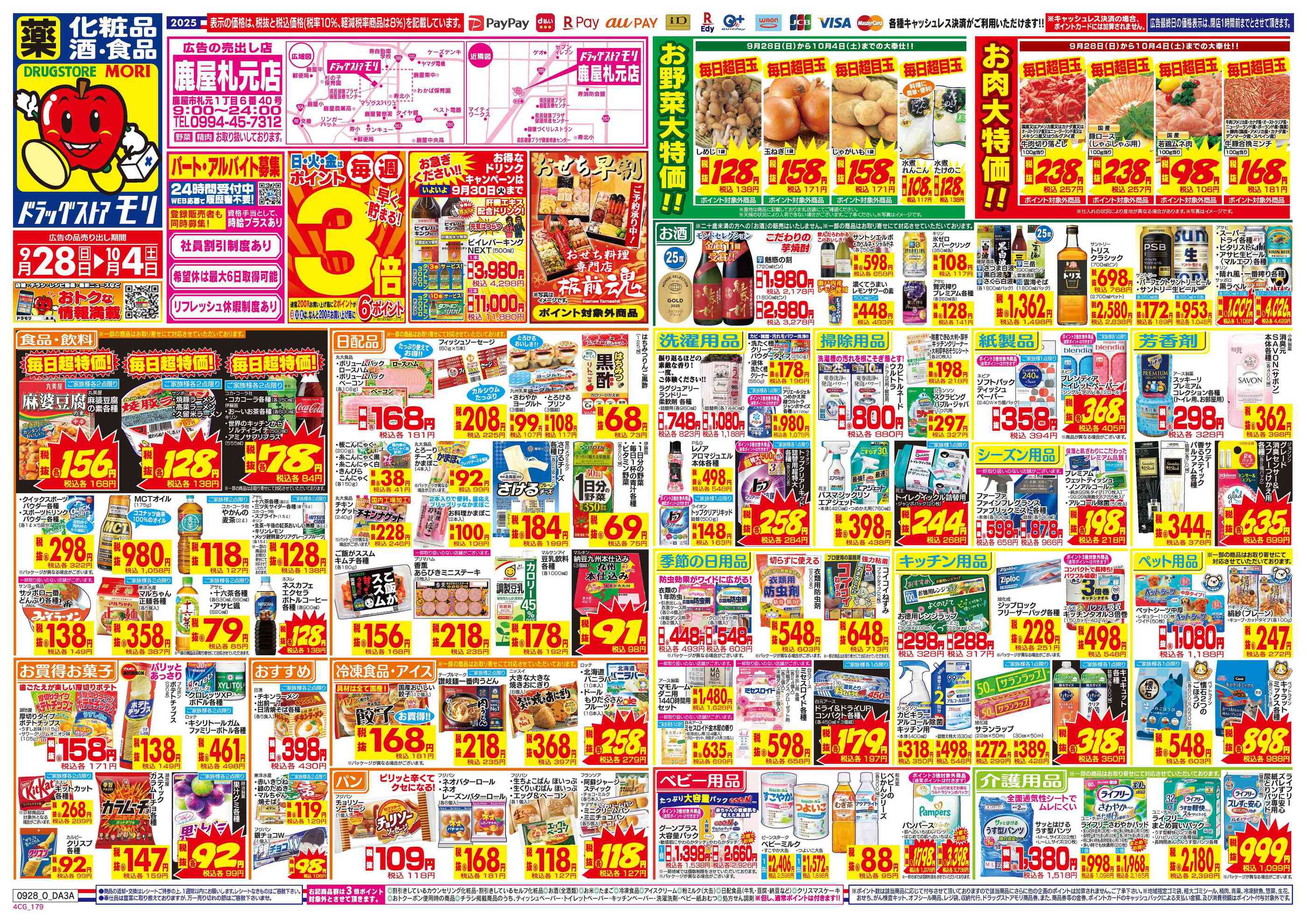 ドラッグストアモリ鹿屋札元店今週のチラシ(2025年9月29日〜10月5日)