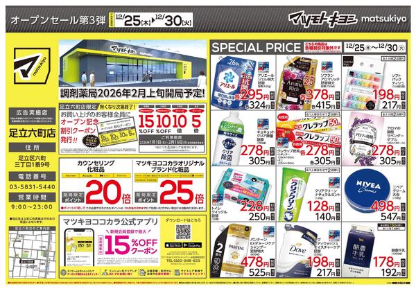 東京都中野区中央5-2-2[12/12open]ドラッグストアマツモトキヨシ足立六町店