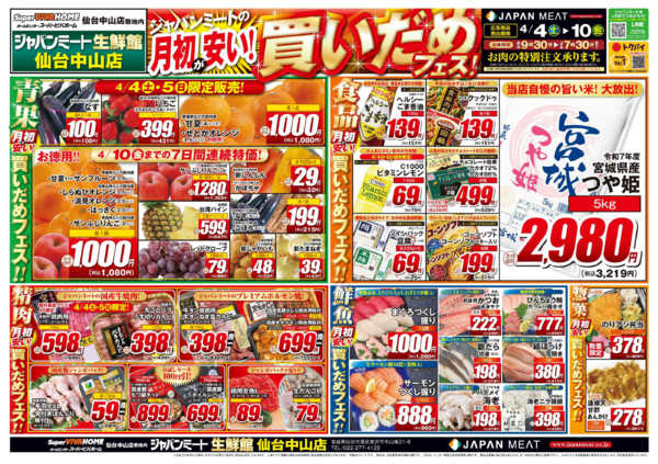 宮城県仙台市泉区西田中字加賀屋敷北1-1 2026年4月3〜8日まで4/4号チラシ