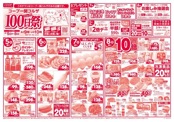 岩手県奥州市水沢佐倉河字東沖ノ目123 コープ一関コルザ リニューアル100日祭協賛セール2026年02月05日(木)〜2026年02月08日(日)new