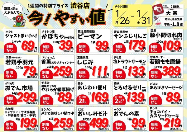 1/26-31 渋谷店のお買い得 2026年1月26日(2026-01-26) 〜 2026年1月31日(2026-01-31)・渋谷店