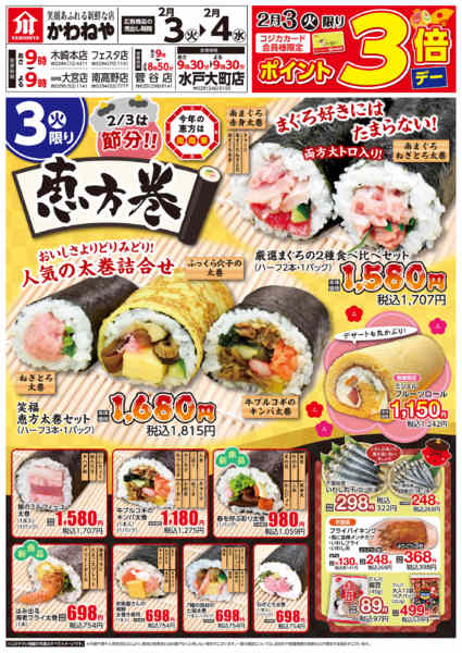 茨城県日立市南高野町2−1−1 2026年2月3〜4日まで2/3は節分!!恵方巻new