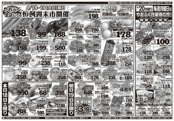 長野県上田市古安曽1064−1 2026年4月18〜20日までやおふく恒例週末市&月曜得の市