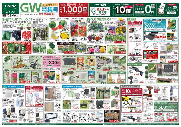 福島県伊達郡川俣町大字鶴沢字学校前15 カインズ 川俣店リニューアルOPEN1周年祭 4/22号new