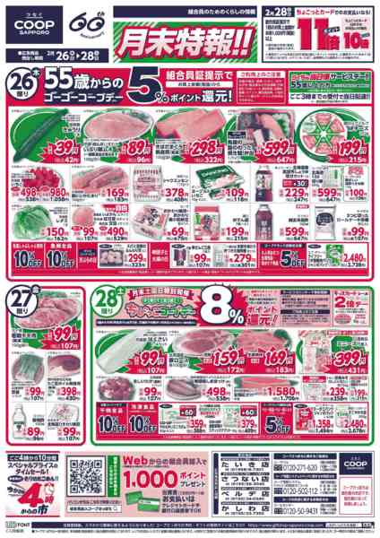 2026年1月26日〜2月28日まで2月えんべつ店 お買得カレンダー