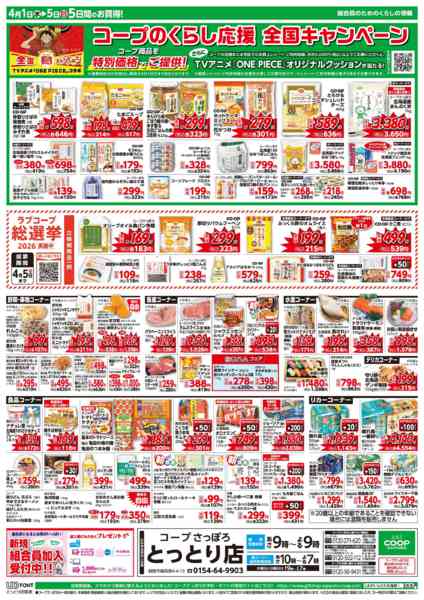 北海道札幌市白石区本通8南1-1コープさっぽろほんどおり店2F 2026年4月1〜5日までnew