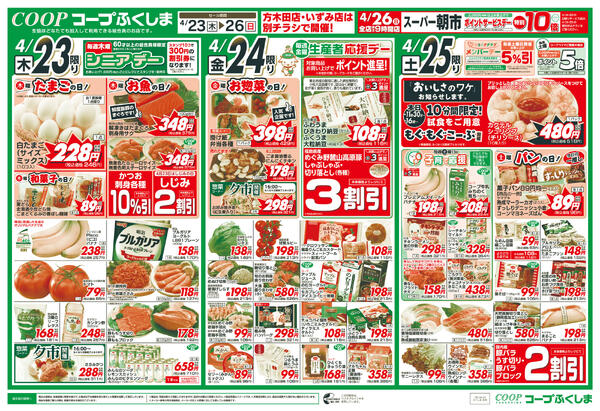 福島県福島市森合字清水7 コープふくしま 方木田店・いずみ店特版2026年04月21日(火)〜2026年04月22日(水)