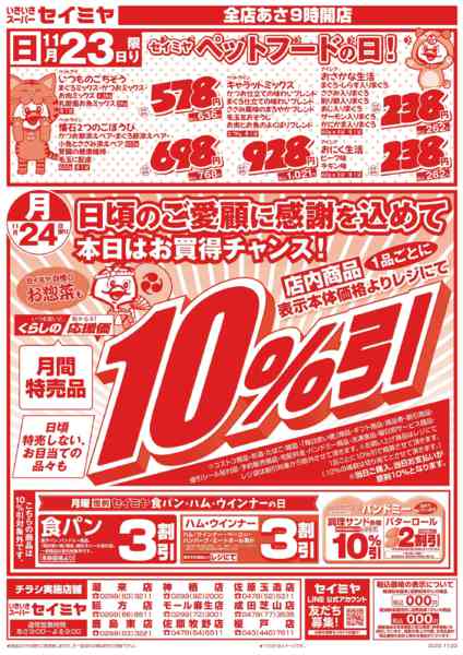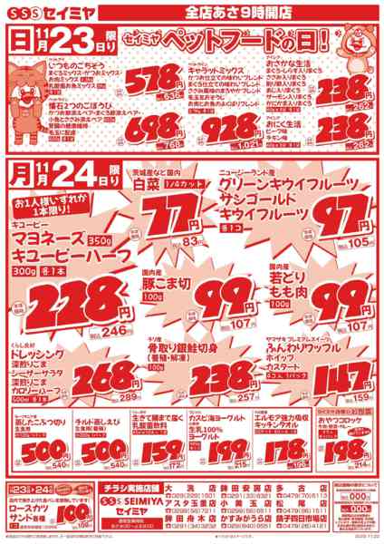 千葉県銚子市四日市場町221−1 2025年11月23〜24日までペットフードの日/24日㊊限りのお買得品