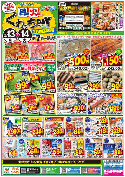 沖縄県宜野湾市赤道2−5−1 2026年4月13〜14日までSNS限定 月曜・火曜くわっちーDAY