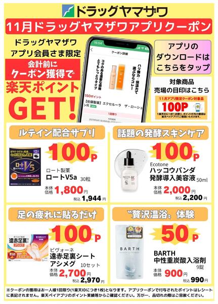 ドラッグヤマザワ11月のアプリクーポン