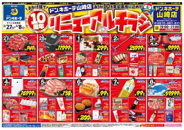 静岡県静岡市葵区山崎1-27-1 2/27号 おかげ様で10周年 ありが10を驚安価格に込めて! リニューアルチラシ 山崎店