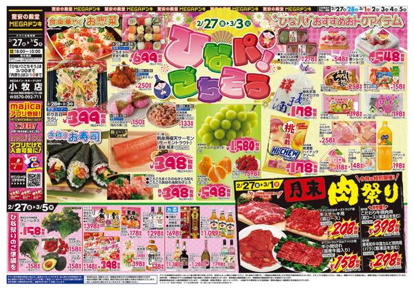 愛知県小牧市堀の内3-15 2/27号 ひなパ!ごちそう MEGAドン・キホーテUNY小牧店
