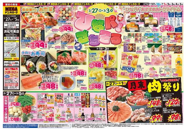 静岡県浜松市中央区東若林町11-1 2/27号 ひなパ!ごちそう MEGAドン・キホーテ 浜松可美店
