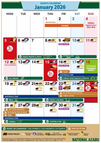ナショナル麻布 ナショナル麻布 カレンダー 2026年1月
