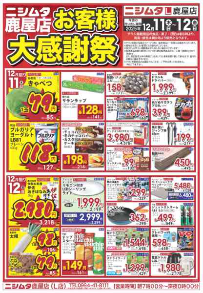 鹿児島県いちき串木野市東塩田町223 2025年12月11〜18日までホームセンターお買い得品