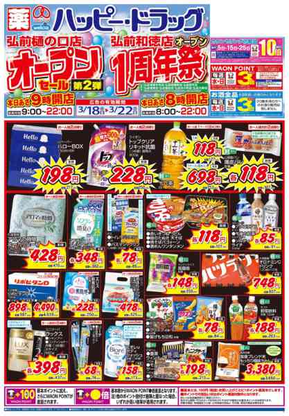 青森県弘前市樋の口2-9−6イオンタウン弘前樋の口内 2026年3月18〜21日まで弘前和徳店周年祭!弘前樋の口店OPセール