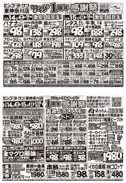 神奈川県横浜市神奈川区広台太田町12−1 ビッグヨーサン東神奈川店限定!リニューアルオープン1周年感謝祭!new