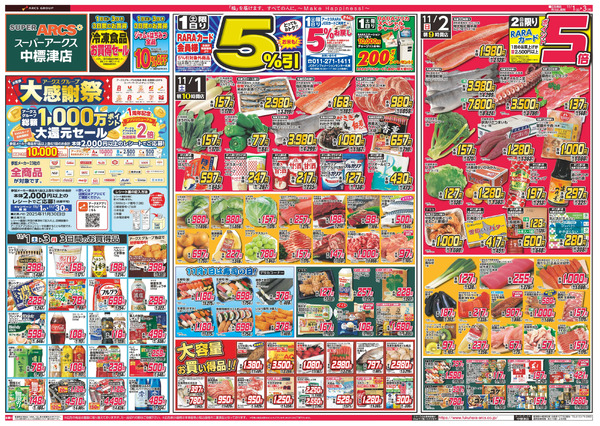 ついたち市 1日RARAカード会員様5%引2日ポイント5倍11月1日~11月3日