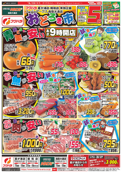 北海道釧路市川上町9−7 ついたち市 1日RARAカード会員様5%引2日ポイント5倍11月1日~11月3日