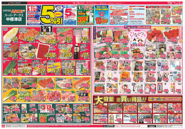 北海道釧路市川上町9−7 ついたち市&ひな祭り 1日RARAカード会員様5%引3月1日~3月2日