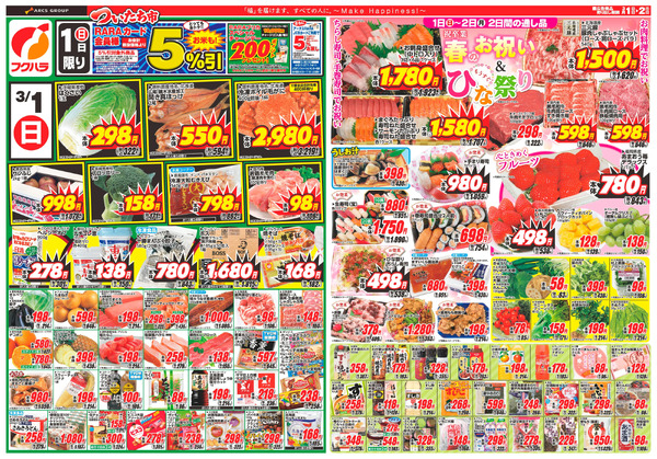 北海道釧路市春採6−2−4 【ハピネスマート春採店】RARA会員様3月お買得カレンダー3月1日~3月31日