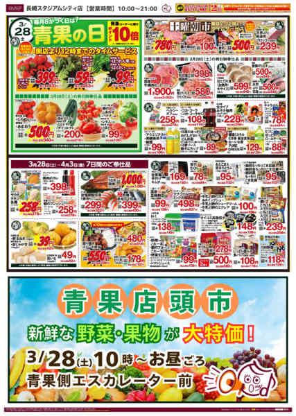 福岡県福岡市早良区西新4−1−1号プラリバ(PRALIVA)地下2階 2026年3月28日〜4月3日まで8がつく日は青果の日new