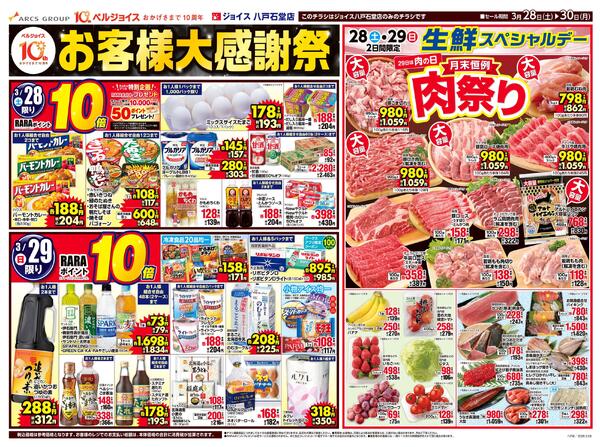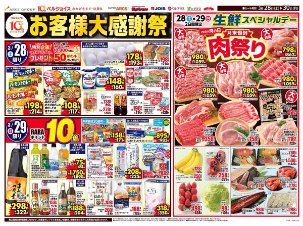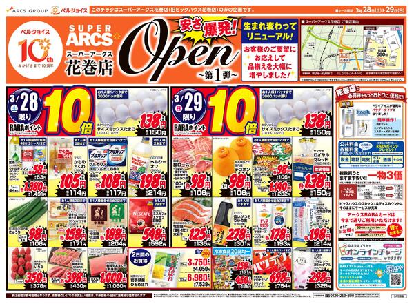 岩手県盛岡市月が丘2−2−10 スーパーアークス青山店リフレッシュオープン100日祭&ベルプラス沼宮内35周年祭協賛セール