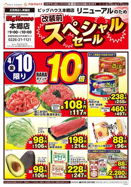 宮城県気仙沼市本郷15−2 ビッグハウス本郷店改装前スペシャルセール