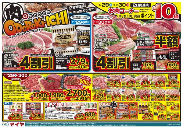 岩手県盛岡市西仙北1−38−30 11/29(土)・30(日) 2日連続 肉のおどろき市&12/1(月)師走ついたち大市new