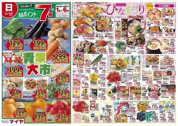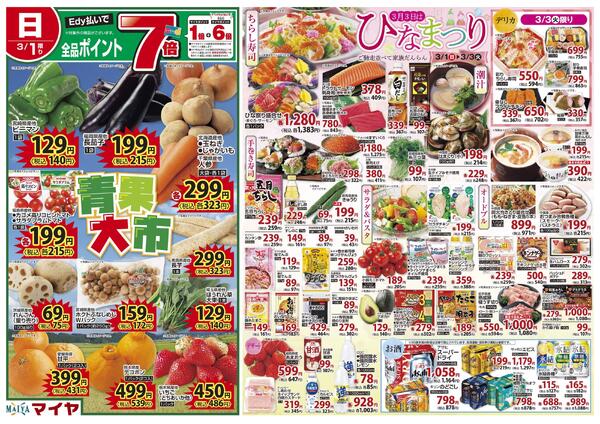 岩手県盛岡市青山1−19−1 3/1(日)青果大市&3/3(火)ひなまつり、火曜市&3/3(火)・3/4(水)お買得品!&3/4(水)水曜市