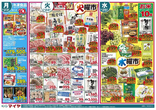 岩手県奥州市水沢字八反町12 3/23(月)冷凍食品ポイント10倍&24(火)火曜市&25(水)水曜市&24(火)・25(水)お買得品!!