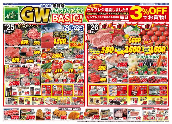 三重県員弁郡東員町六把野新田字嶋畑33-1 BASIC 東員店 GWもやっぱりお安くBASIC!!4月25日(土)~4月28日(火)