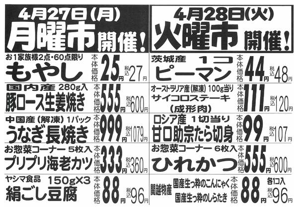 2026年4月27〜28日まで月火曜ゾロ目市開催!!new