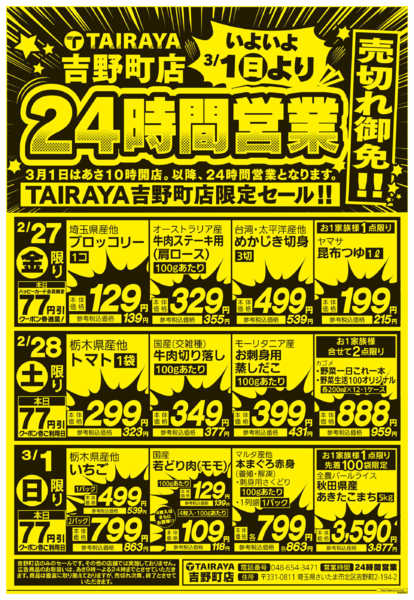 埼玉県さいたま市北区吉野町2−194−2 2026年2月27日〜3月1日まで「吉野町店」3/1日より24時間営業!new