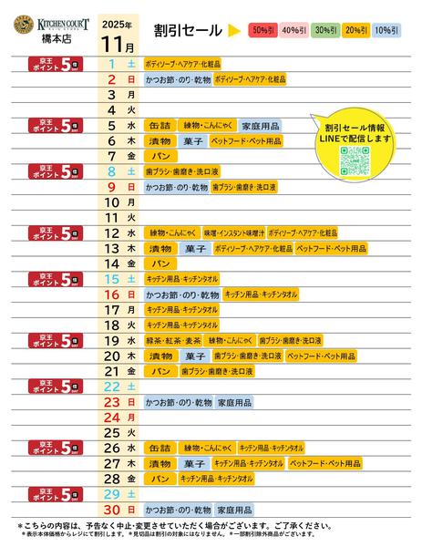 神奈川県相模原市緑区橋本2−3−2京王クラウン街橋本    2025年11月1〜30日まで●11月お買得カレンダー●new