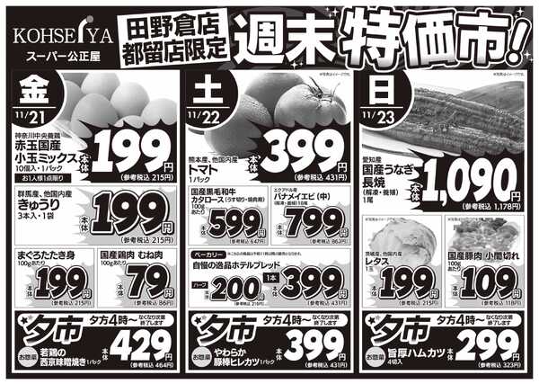 山梨県上野原市コモアしおつ3−20−12 公正屋 11/20(木)~11/26(水)号