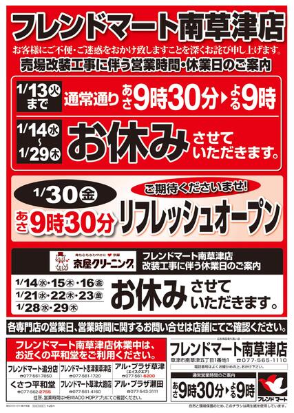 滋賀県草津市南草津5−1−1 1/10(土)~営業時間・休業日のご案内