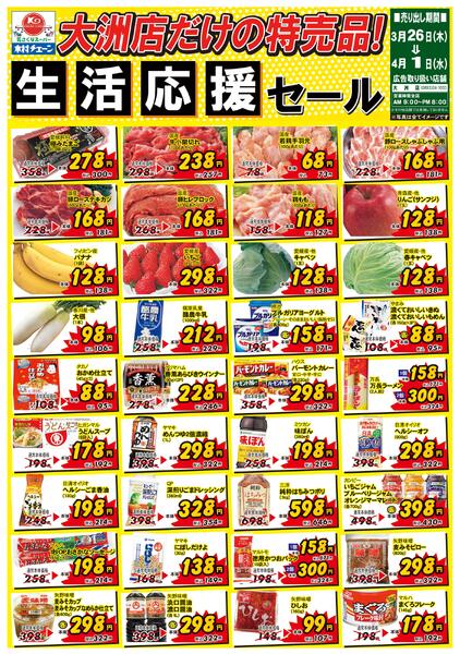 愛媛県大洲市東大洲102−2 大洲店だけの特売品!生活応援セール2026/03/26(木)~2026/04/01(水)