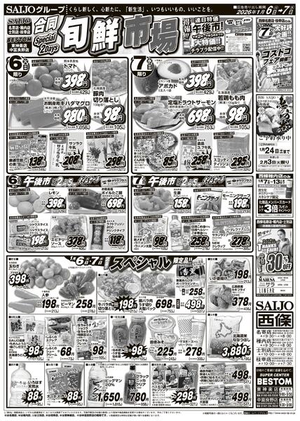 北海道上川郡東神楽町ひじり野南1条5−1−1 合同旬鮮市場/スペシャル限定品!!/青果祭り/厳選!98円・198円均一1/6(火)~1/7(水)new