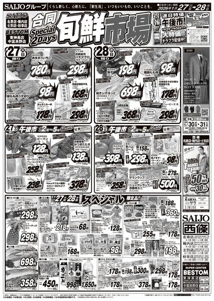 北海道上川郡東神楽町ひじり野南1条5−1−1 合同旬鮮市場/スペシャル限定品!!/肉市/もつ鍋大集合!!/厳選!98円・198円均一1/27(火)~1/28(水)