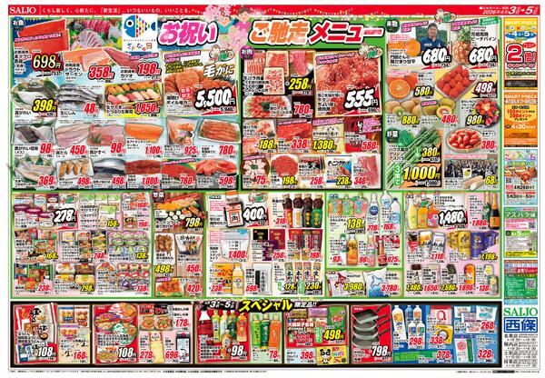 北海道名寄市西4条南8−1 お祝いご馳走メニュー/スペシャル限定品!!/家計応援 今月のお買得品/春物インナーSALE4/3(金)~4/5(日)