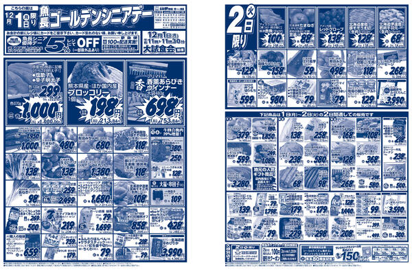 北海道函館市昭和2−14−7 魚長 ゴールデンシニアデー/2025年12月1日(水)〜2日(木)/夢市場全店舗のみ(げんき市場店舗、乃木市場を除く)new
